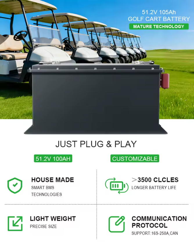 OEM ODM LiFePO4 High Capacity 51.2v 105ah MAX BMS 200A Golf Cart Battery Electric Three-wheel Lithium Ion Battery Packs